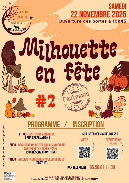 C’est dans cet esprit qu’ont été créés les événements « Milhouette en Fête » : des rendez‑vous conviviaux, ouverts à tous, où chacun peut venir profiter de la ferme le temps d’un après‑midi, d’une soirée ou d’une journée pleine de bonne humeur.